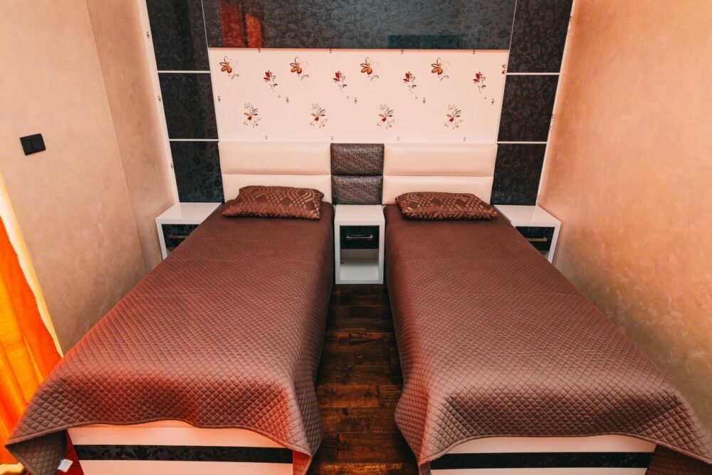 Comfortable two bedroom apartment consist of two bedroom with one double & two single bed and living area which is include sofa beds, private bathroom with european quality materials, mini bar, terrace with spacious sea view of Budva coast for our special guests! Central heating and conditioning oppurtunities available in the room. Wifi connection is free. Also parking & open swimming pool are is free for our special guests!